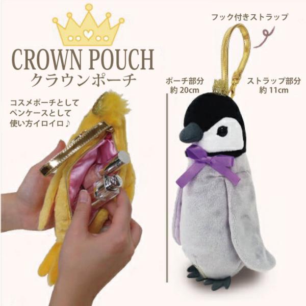 王冠をかぶったカワイイ動物たちのポーチ♪ クラウンポーチ 化粧ポーチ ペンケース アニマル 全9種 マルチケース コスメ ポーチ ゴルフ プレゼント ギフト インコ うさぎ ペンギン 送料無料
