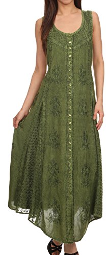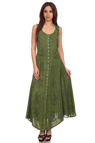 -. Title : Sakkas Beverlee Embroidered Button Down Sleeveless Caftan Dress