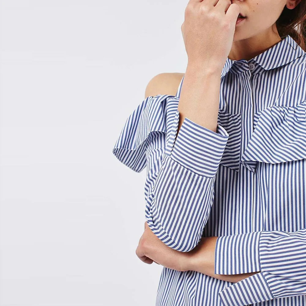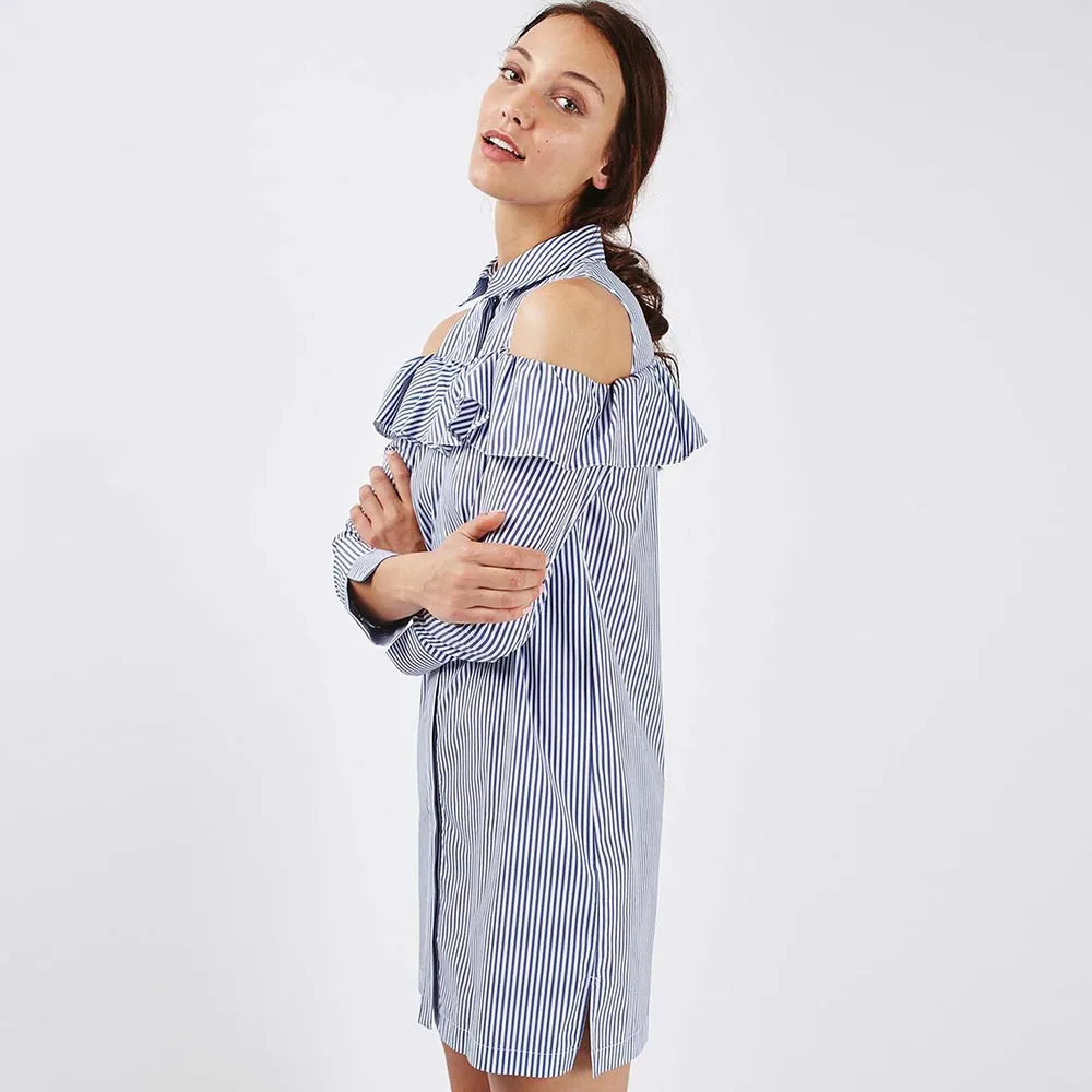 HDY Haoduoyi Cold Shoulder Shirt Style Ruffle Dress Summer Strip Long Sleeve A-line Dress Streetwear Casual Femal Mini Dress | |||||||||||||||||||||||||||||||||||||||