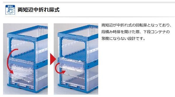 側面が透明で内容物の確認が一目でできる特長に加え、扉を付ける事により段積みした状態で内容物を取り出す事ができます。