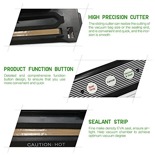 Vacumm Sealer,2017 New Model Automatic Adjustable Vacumm Sealing System for Food Preservation Food Sealer Sous Vide with Sealing Starter Vacuum Bag and Roll (Large) (Large)