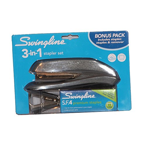 Swingline 3-in-1 Stapler Set, Bonus Pack Includes Stapler, Staple Remover and 1250 Premium Staples, Grey