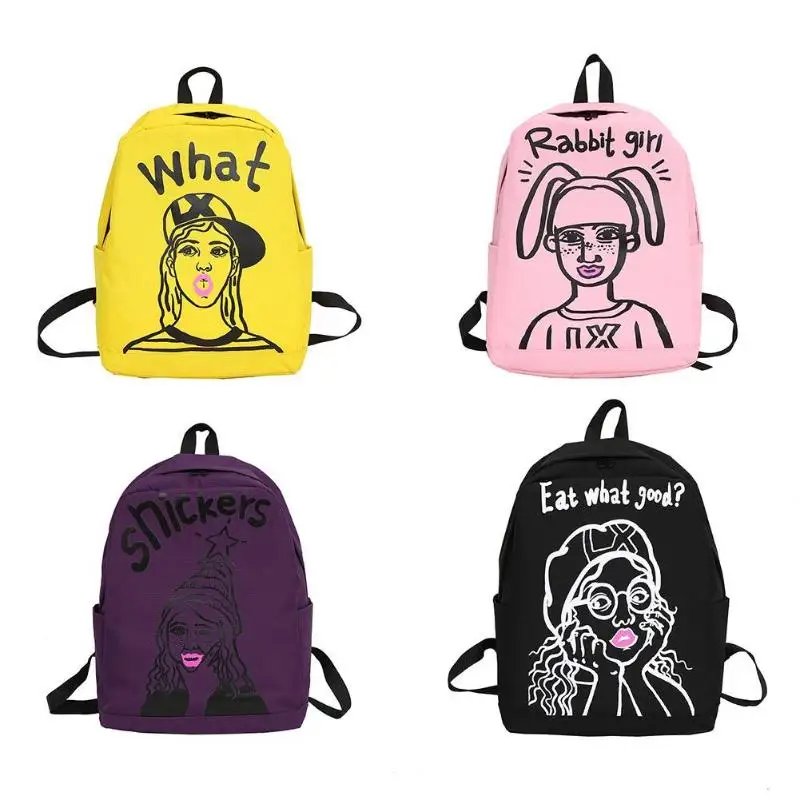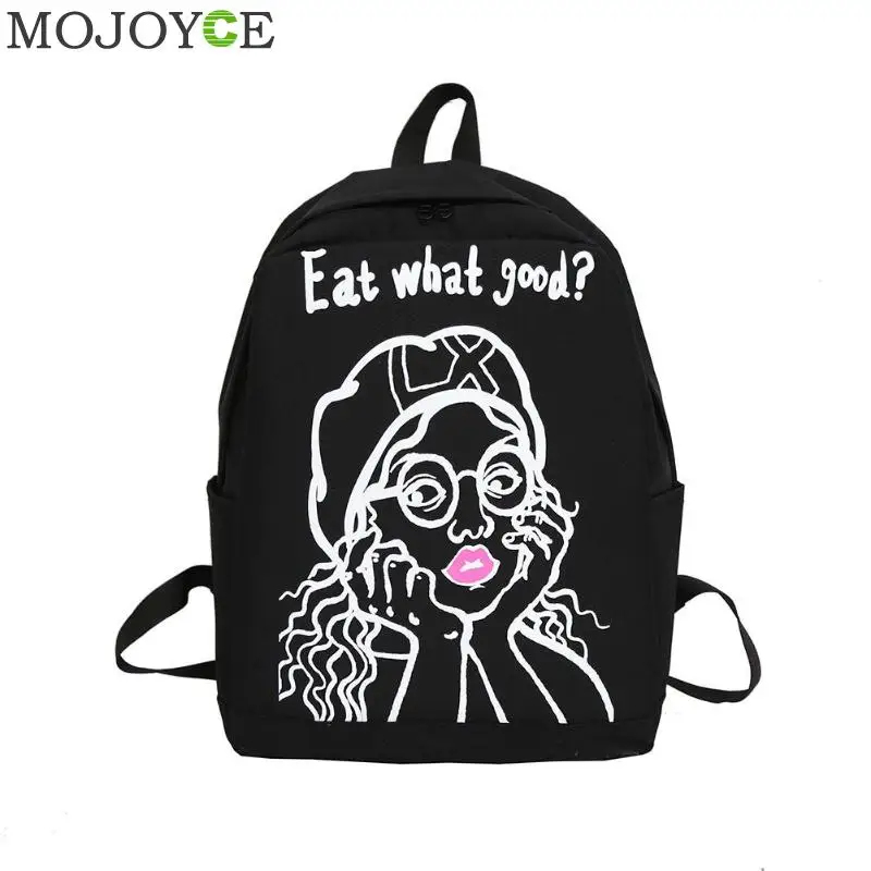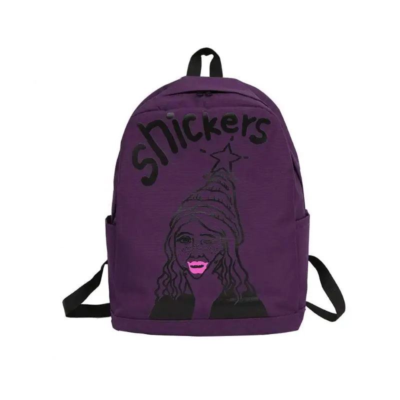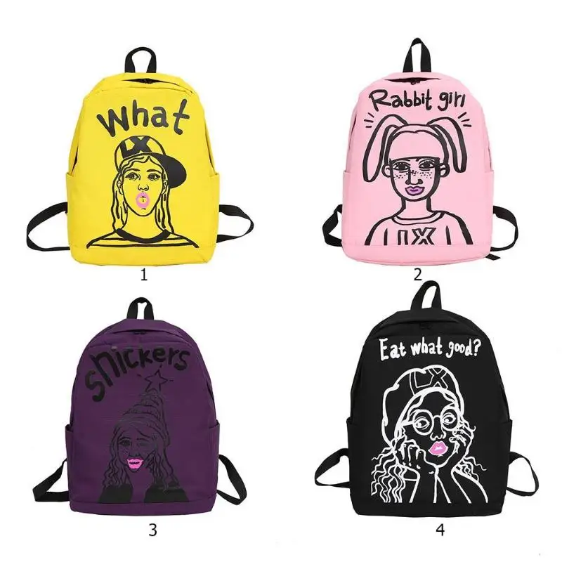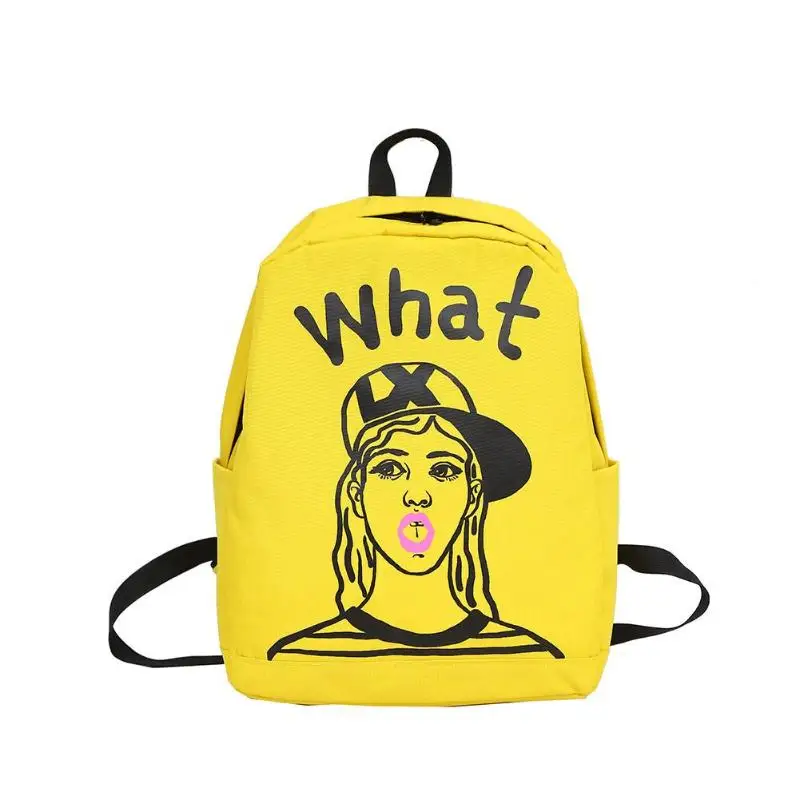 Cartoon Print Women Canvas Backpack Street Girls Large Capacity Casual Sports Shoulder Bag