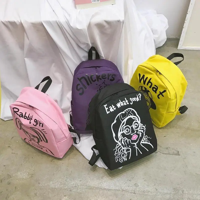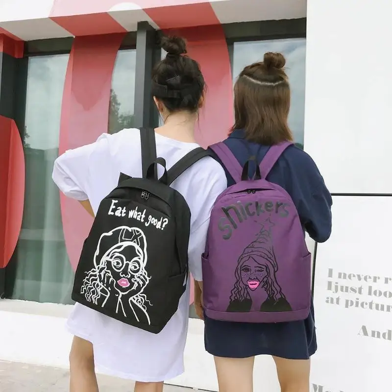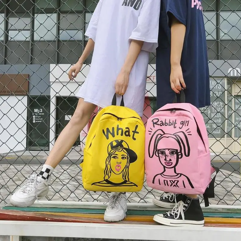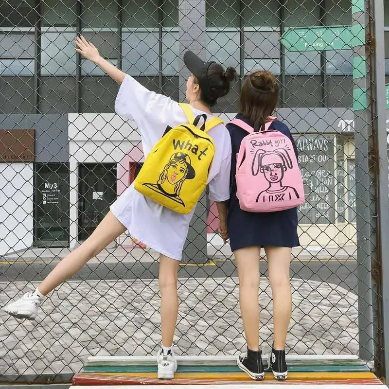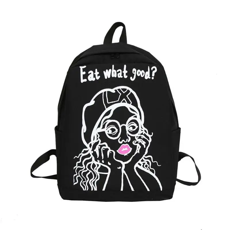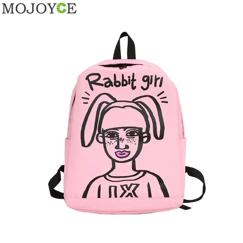Cartoon Print Women Canvas Backpack Street Girls Large Capacity Casual Sports Shoulder Bag