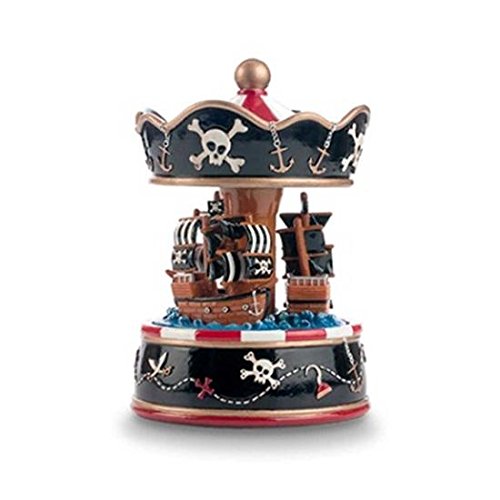 - It features three beautifully hand painted ships atop a brightly colored pirate ship carousel that plays the song "Pirate" as it rotates