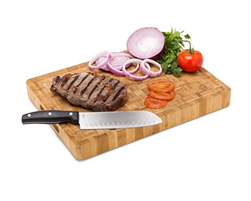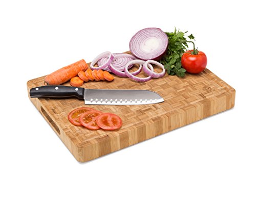 LARGE END GRAIN BAMBOO CUTTING BOARD | PROFESSIONAL, ANTIBACTERIAL BUTCHER BLOCK | NON-SLIP RUBBER FEET