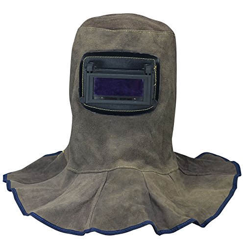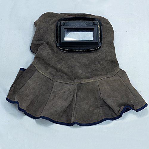Brown Leather Welding Hood Helmet with Neck Shoulder Drape