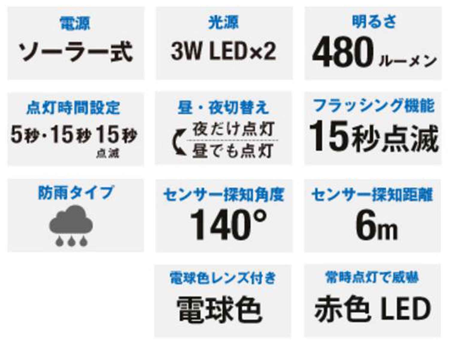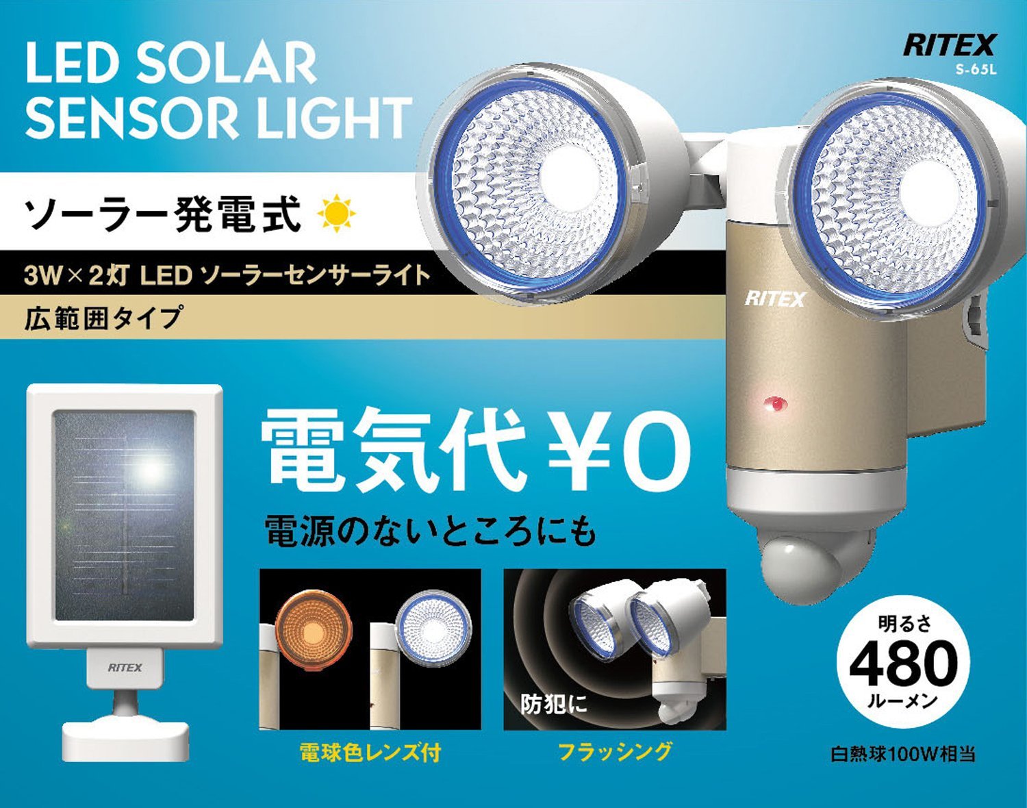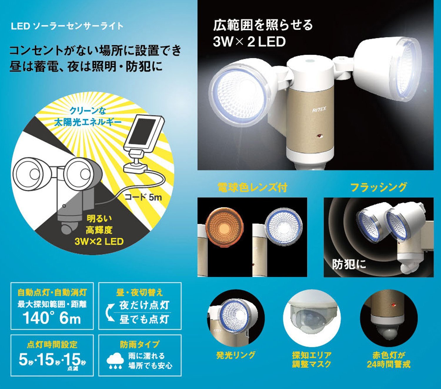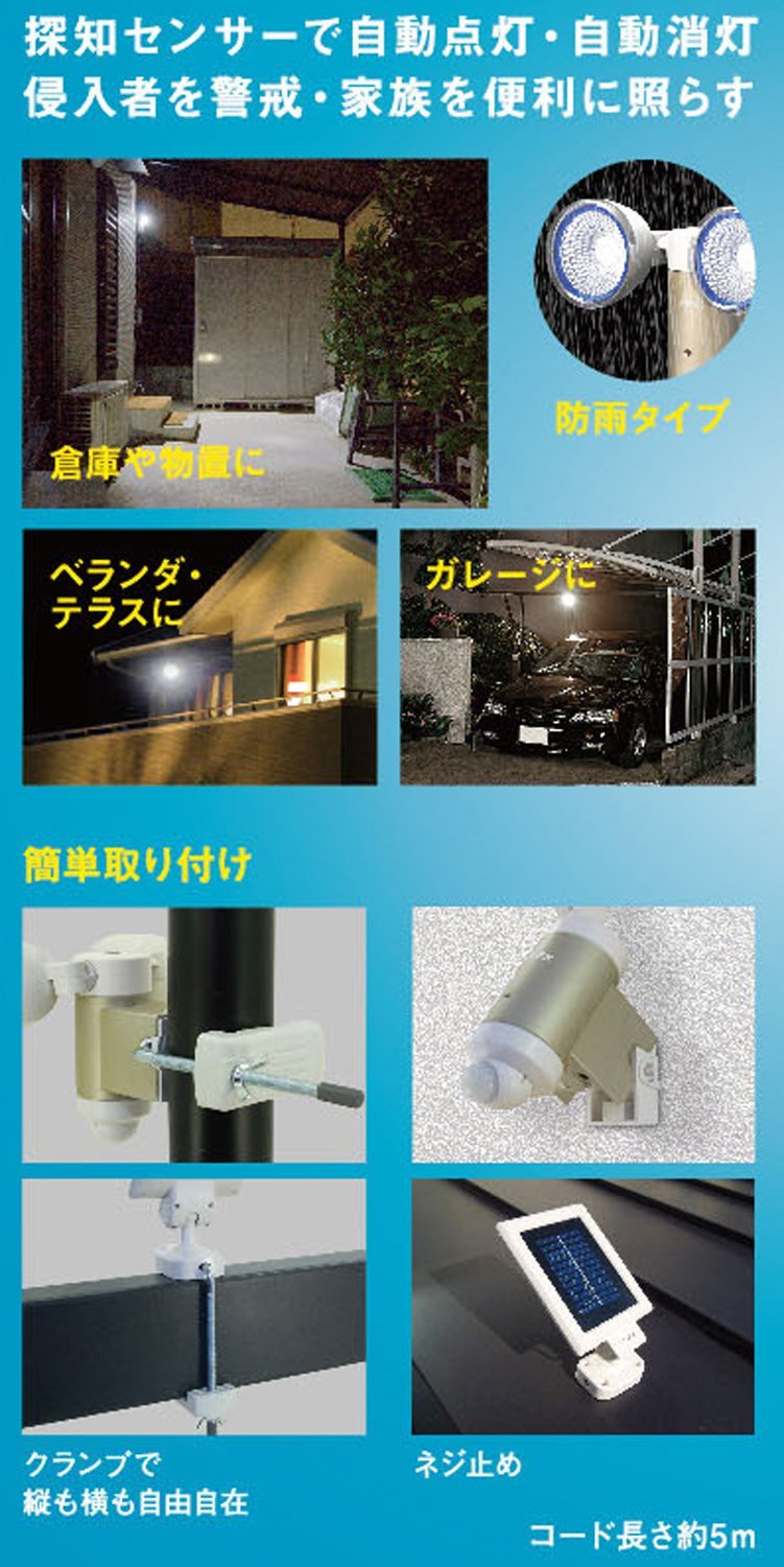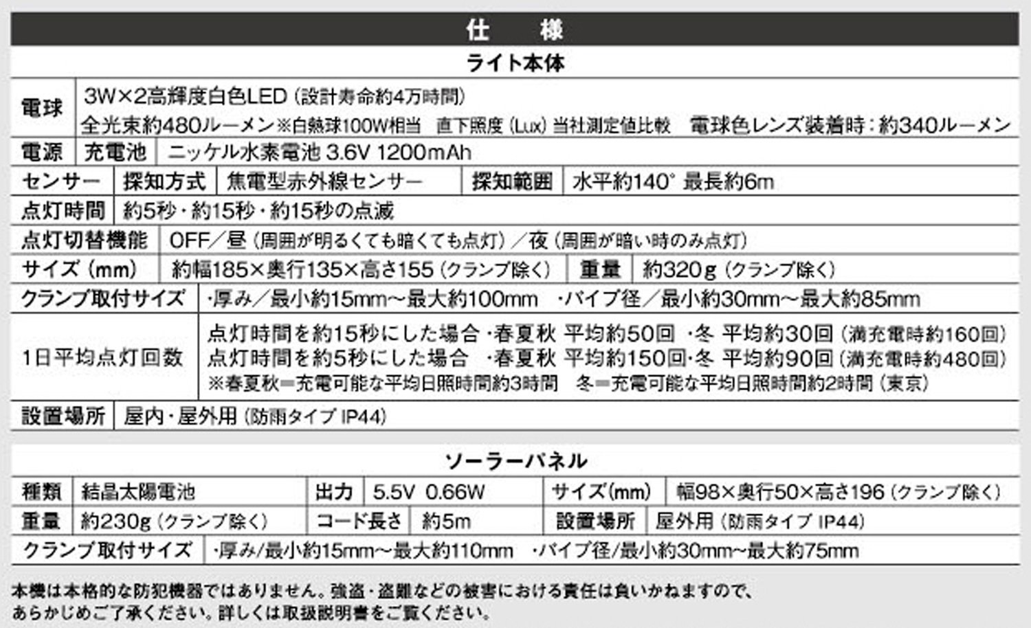 ● Because it is a solar system, it can be installed in places where there is no outlet, electricity storage in the daytime, lighting / crime prevention at night