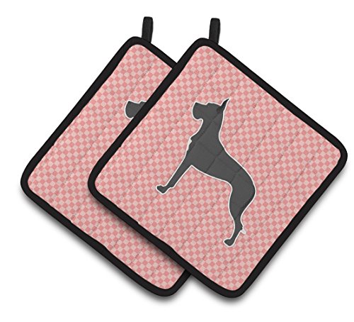 Caroline's Treasures Great Dane Checkerboard Pink Pair of Pot Holders BB3675PTHD, 7.5HX7.5W, Multicolor