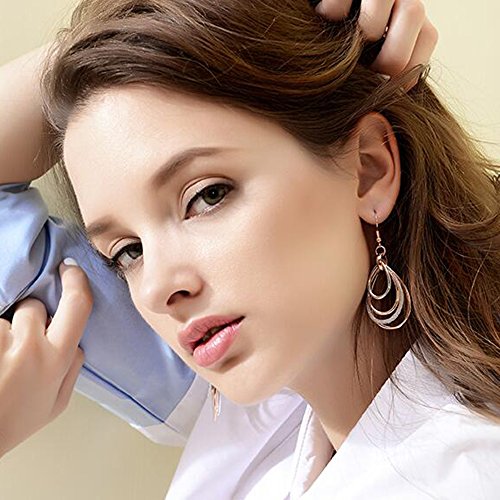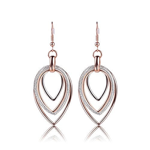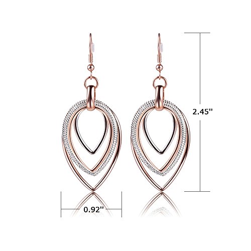 Rose gold dangle earrings with long geometric teardrop design, also the teardrop shape can be reversed to heart shaped, two ways to wear that earrings. It will be the most fashion jewelry accessories in 2018, let's come and caught the trend. Item size : 0.92'' x 2.45'', net weight: 7.5g / 0.26oz .