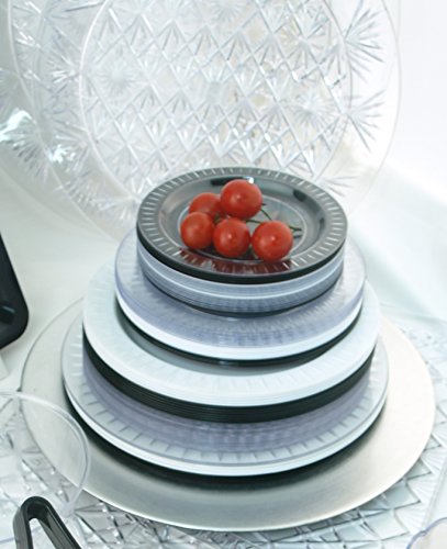 - Disposable hard plastic plate for entrees and other dishes; 12 packs of 14, for a total of 168 plates