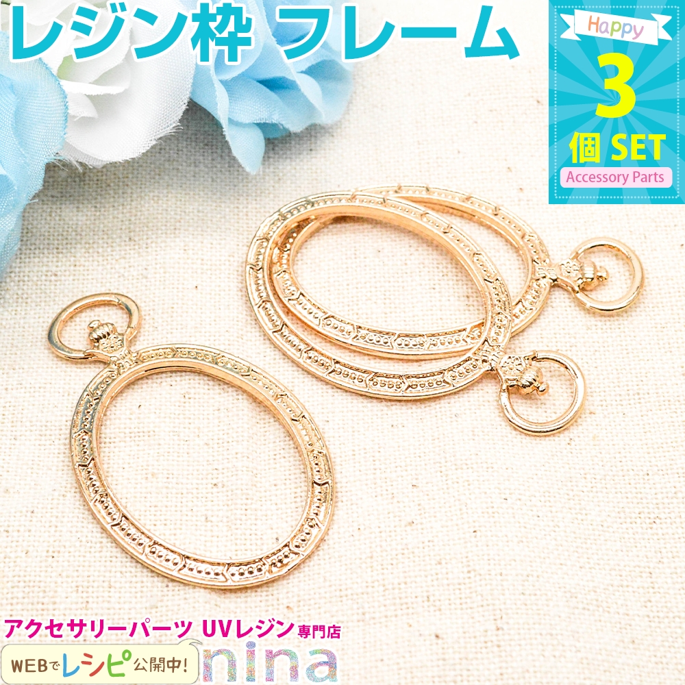 ■商品名:レジン枠 フレーム ピンクゴールド 楕円 懐中時計 3個セット
