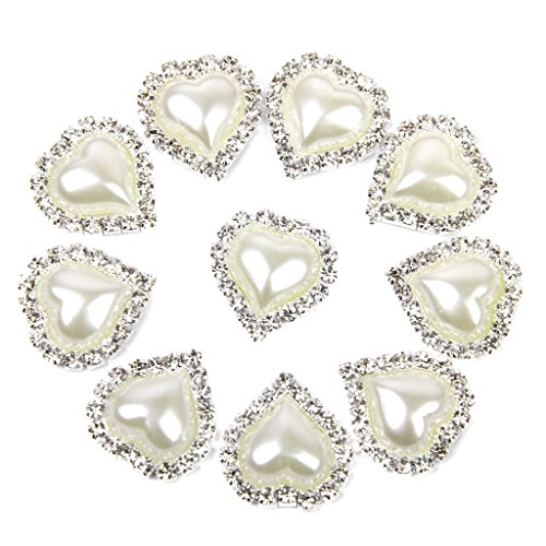 10pcs Heart White Faux Pearl Button Flatback Embellishment 20mm x 25mm