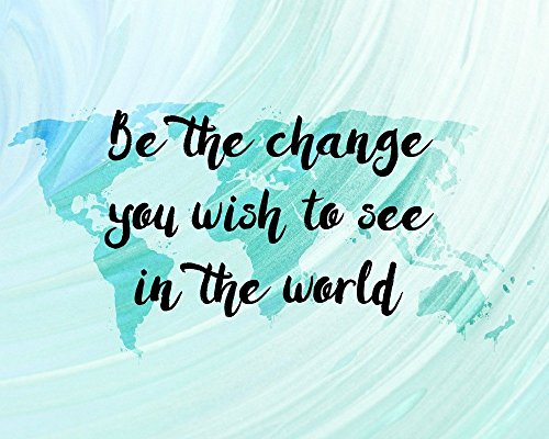 This listing is for an 8x10 inch print of my original artwork. The print features the inspirational quote "Be the change you wish to see in the world." The quote appears over a painted world map background. This artwork makes a great inspirational gift or addition to travel or inspiring decor in the home or office. All prints are made using high quality archival matte paper. The print will have approximately 1/2 inch of extra paper on all sides so that you can matte and frame your new art if you choose to. Please note, prints will ship rolled in a tube. The frame is NOT included.