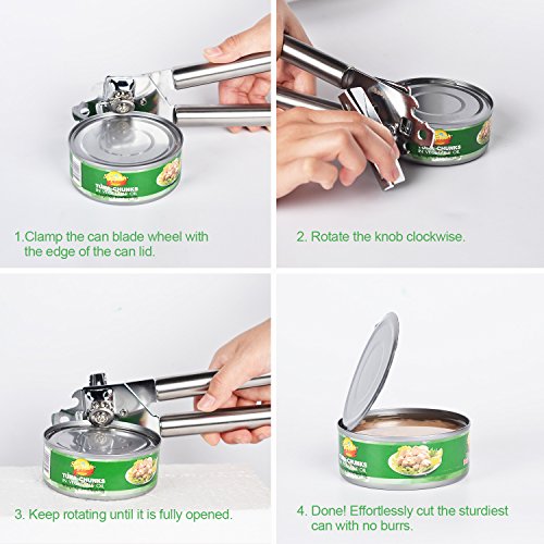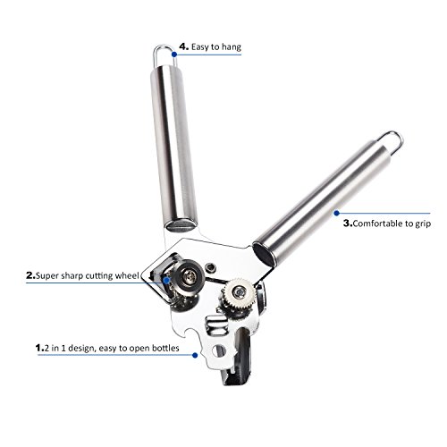 High Quality Stainless Steel: The can opener is made of top rated stainless steel which allows it to last for years and it won't weaken at joints.