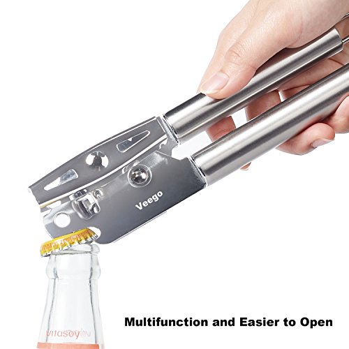 Veego Can Opener, Stainless Steel Manual Tin & Can Opener with Sharp Cutting Wheel, Heavy Duty Safety Bottle Opener