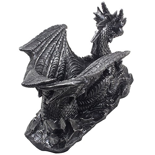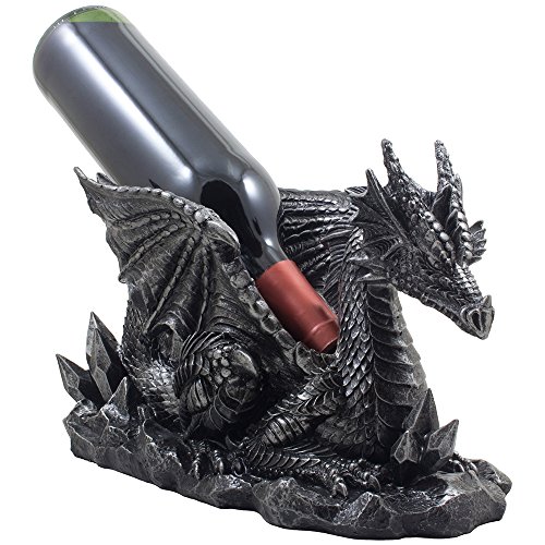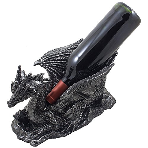 Mythical Guardian Dragon Wine Bottle Holder Statue in Metallic Look for Decorative Medieval and Gothic Decor for Home Bar, Tabletop Wine Rack and Office Server Decorations Or Rec Room Gifts for Men
