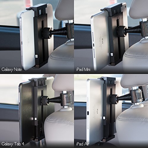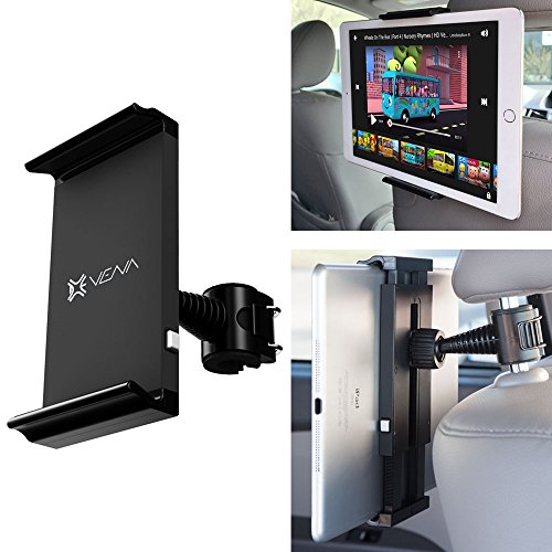 Vena HEADTAB Head Restraint (Headrest) Mount is designed to install quickly and easily and works with any tablet, smartphone or navigation devices with 4.0" - 11.0" display or width up to 7.48 inches / 190mm for rear seat passengers. Quick Release Secure Clamp