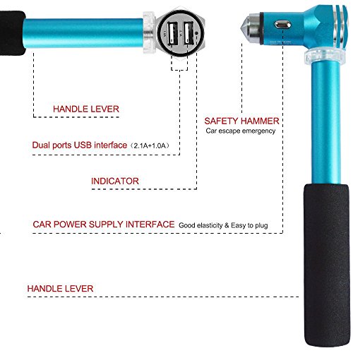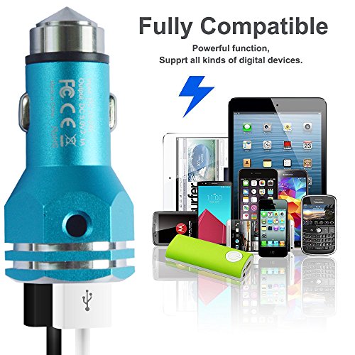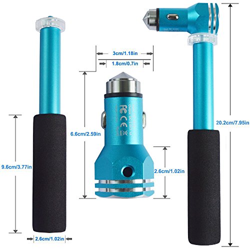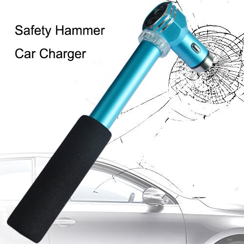 Safety Hammer Car Charger, WoSports 3.1A / 15w Dual USB Ports Car Charger with Car Escape Emergency Tool for iPhone Android phones and tablets (Blue)
