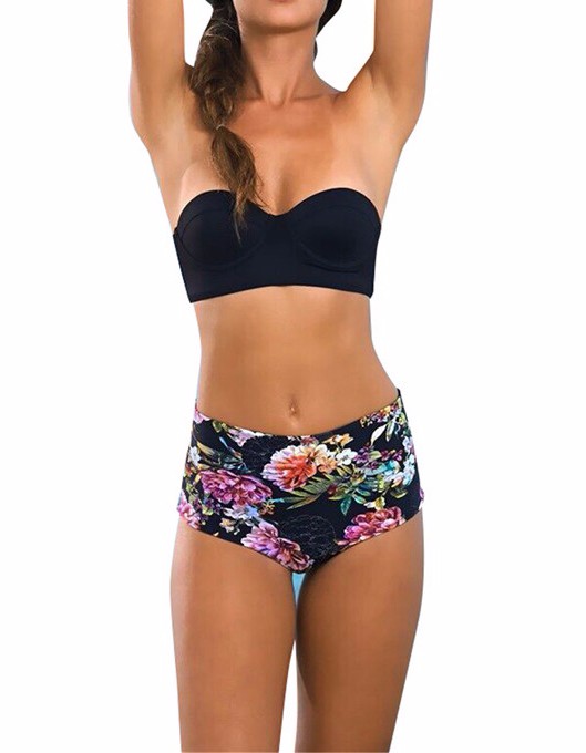 2016 Young Girls Sexy Hot High Waist Floral Print Bikini Set Trikini Women Swimwear Swimsuit Bathing Suit Beachwear BHSJ16040BK0