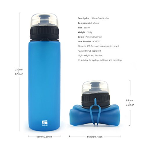 SHOKE Sports Collapsible Water Bottle, Portable Flexible BPA Free, 19oz or 25oz