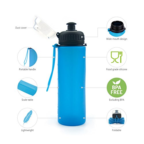 VERSATILE - This stylish designed water bottle can be folded up to 1/4 the original size easily. You can take it for camping, traveling, hiking, cycling, running, climbing, yoga¡