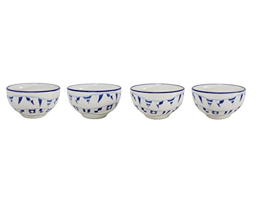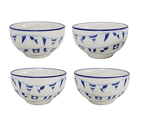 Euro Ceramica Ahoy Collection Nautical 5.6" Ceramic Soup/Cereal Bowls, 22oz, Set of 4, Blue & White