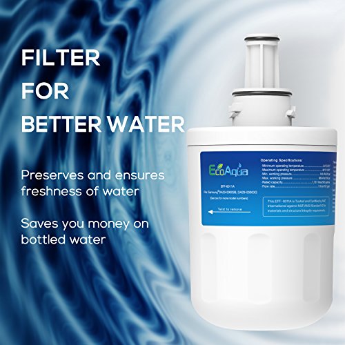 The aftermarket EcoAqua model EFF-6011A is used in Samsung refrigerators. It is designed to replace the original DA-29-00003G Filter. The EFF-6011A filter creates better tasting water for drinking and making beverages as well as clean, clearer, healthy ice. Features: High quality, cost-effective alternative to factory original Easy installation and operation Helps reduce chlorine taste and odor. Helps reduce contaminants found in tap water and improves its quality. Made from renewable carbon media.Feature