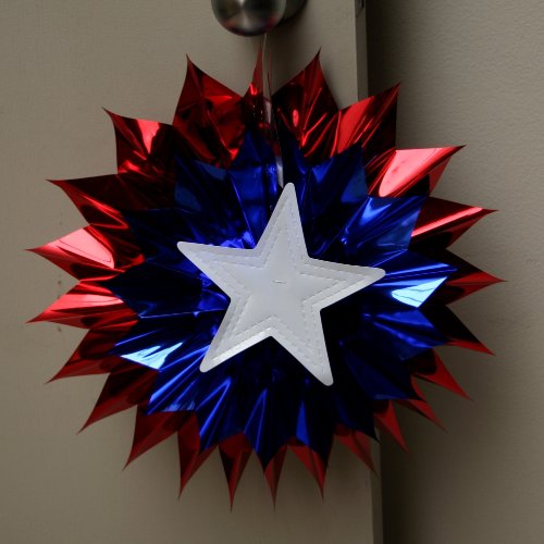 Studio : The Beistle Company Publisher : The Beistle Company Binding : Kitchen Product Description Beistle 50518-RWB Patriotic Fan-Burst. This patriotic fan-burst features a red and blue metallic fan-burst with a white star silhouette. It measures 15 Inch and is two-sided. You can hang this beautiful decoration at any July 4th celebration!. 0
