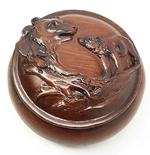 -. Binding : Kitchen -. Brand : Gifts & Decors -. EAN : 0636676549750 -. Feature : This jewelry box measures approximately 4.25" in diameter and 2.5" tall. It is 1.5" deep. / It is made of designer polyresin, individually hand painted and polished. It is also equipped with two metal hinges. / The artists paint these resin boxes to look like wood. Wood products need to be moisturized but with this process over resin, you do not need any care to keep the box functional for a very long time. -. Label : Gifts & Decors -. Manufacturer : Gifts & Decors -. ProductGroup : Home -. ProductTypeName : HOME -. Publisher : Gifts & Decors -. Studio : Gifts & Decors -. Title : Beautiful Rustic Faux Wood Grizzly Bear Couple Rounded Jewelry Box Figurine Trinket Collectible -. UPC : 636676549750