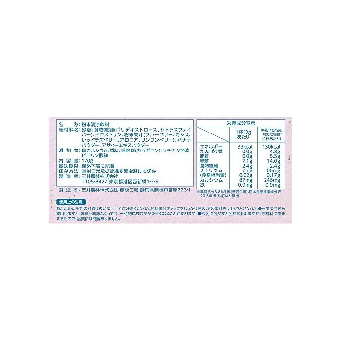 원본상품명: 日東紅茶 牛乳でつくるフルツスムジwithアサイ 170g×3袋