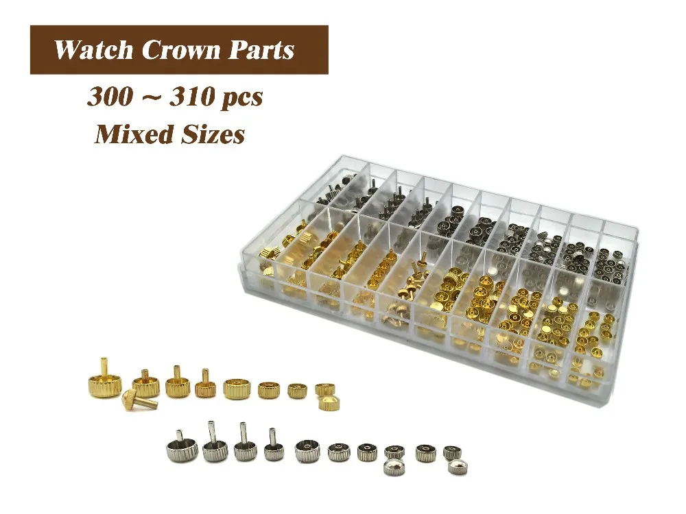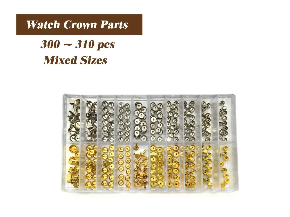 항목 설명 방수 시계 왕관 교체 색상: 금과은 크라운 직경:3.5mm ~6.0mm 혼합 크기 수량:총 약. 300 ~ 310 개