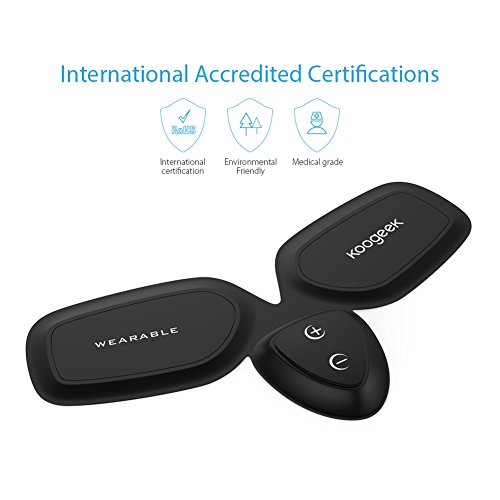 [International Accredited Certifications] RoHS-konformes Kieselgel aufnehmen, das harmlos, giftig und umweltfreundlich ist. Die beigefugten medizinischen Gel-Patches haben den menschlichen Biokompatibilitatstest bestanden und die internationale Zertifizierung erhalten.[Powerful App-Funktion] Koogeek App entwickelt mehrere Fitness-Modi einschliesslich Musik spielen, Fettverbrennung, Entspannung und Bewegung Modus.