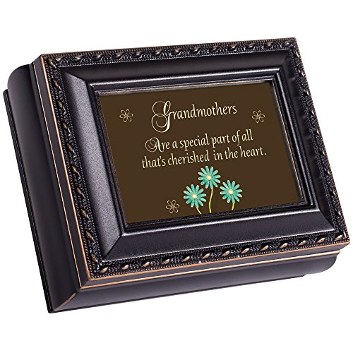 Grandmother Cherished Distressed Black Cottage Garden Tiny Square Treasure/Keepsake Box