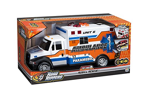 -. Feature : Toy State / Designed with realistic features in a smaller scale / This amubulance features forward drive, engine and rescue sounds, music and vocal phrases / When you see these lights in your rear view mirror you know to pull over for this Ambulance / 3 "AA" batteries included