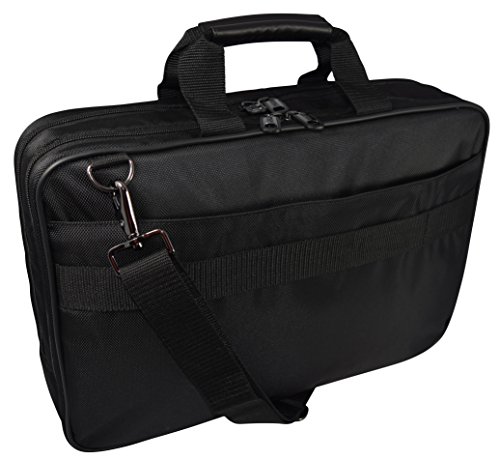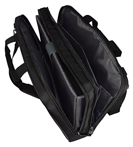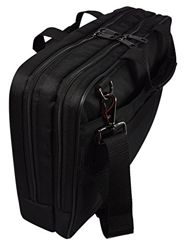 - Feature : Made of 1680D Polyester / Front exterior full length zipper pocket includes an organizer to hold a variety of business essentials / Front compartment features a padded pocket to fit a laptop with up to a 17 inch screen and three open top padded accessory pockets / Rear compartment features a 2-file divider / Removable, adjustable and padded shoulder strap