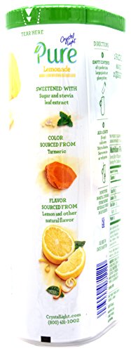 With no artificial sweeteners, flavors or preservatives Crystal Light Pure mixes up into pure low-calorie perfection at just 5 calories per serving. Crystal Light Pure On the Go is sweetened naturally with stevia leaf extract and sugar.