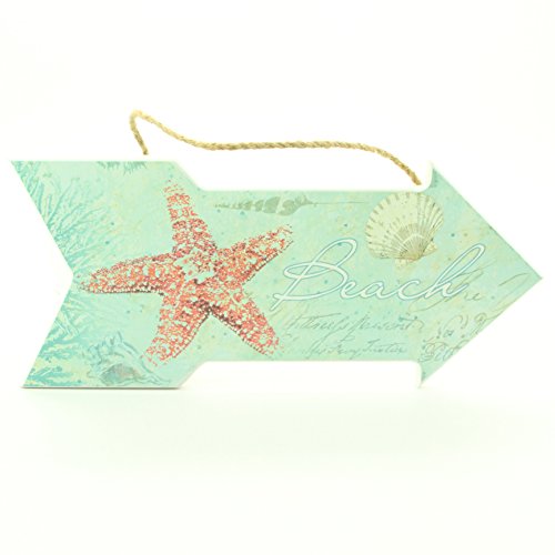 Beach Sign with Starfish and Shells - Beach House or Cottage Decor - Ocean - 13" X 6"