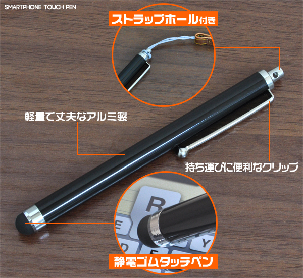 便利なストラップホール付き!スマートフォン&タブレットPC用タッチペン