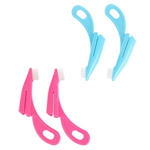 -. Feature : This is a 4-piece set?2pcs blue,2pcs pink). The Brush is 6.3" long with 0.78" wide finger hole / Long handle makes it easy to brush the deep area of the mouth / The dual headed design-Meets a variety of use requirements. It gives you a small brush and a large brush to improve the dental hygiene of your pets / Safety-The hardness of bristles is soft and moderate, which reduces the risk of harming your pet and brush off dirt and calculus at the same time / Applicability-With excellent design, it can meet the needs of owner of cats, dogs or other types of pets