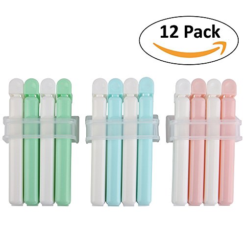Anboor 4.5" Bag Clips With Suction Holder Sealing Food Clamp Sealer for Kitchen Assorted Colors set of 12