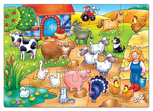 -. Feature : Who's on the Farm is a colorful 20 piece puzzle / Includes activity guide to encourage child development / Helps develop logic and basic geometric reasoning skills / Approximate puzzle size: 16.5" x 12" / Made in the United Kingdom - All Orchard Toys puzzles are made from 100% recycled and recyclable products