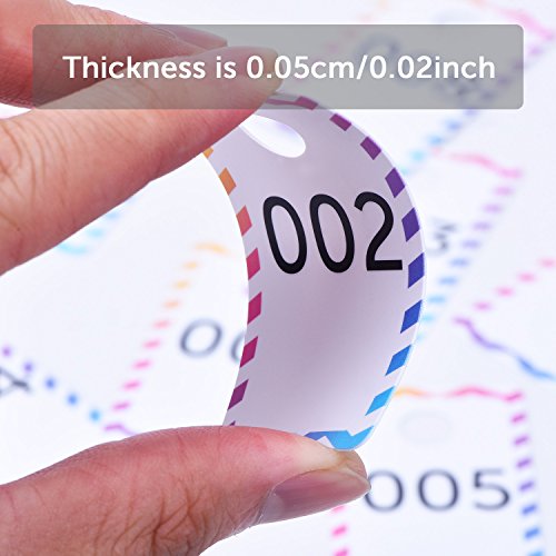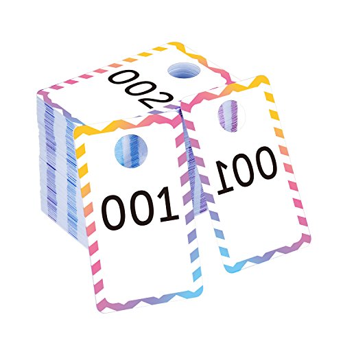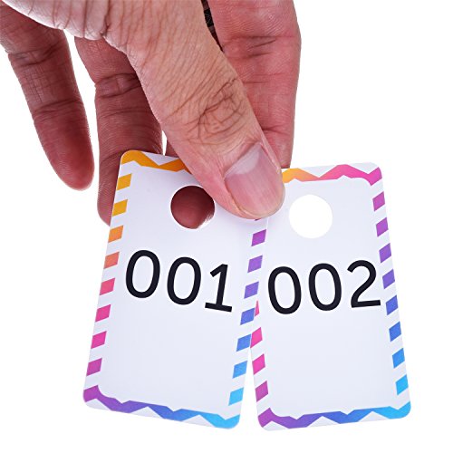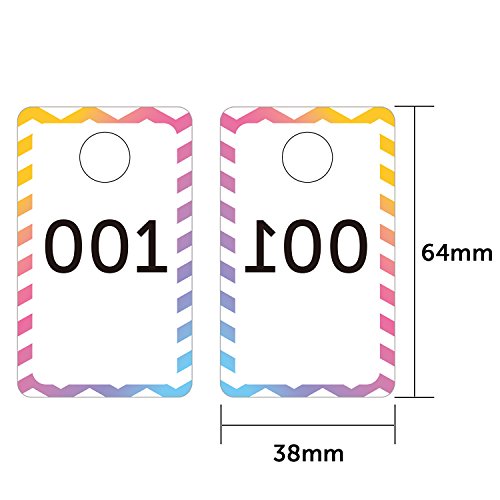 Mudder Live Sale Number Tags 100 Pieces Plastic Coat Check Numbers with Normal and Backward Numbers 100 Consecutive Numbers, Colorful Pattern Design (001-100)