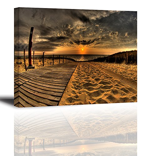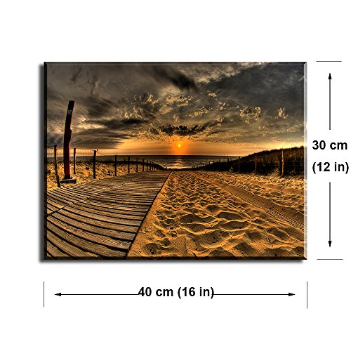 1: Canvas wall art of tan sunset footprints beach, printed and framed by Artisweet. The artist-grade canvas has strong sense of texture and full of artistic touch, reflects your noble temperament and taste. This wall decor dimensions: 12"x16" = 30x40cm, close to A3 size.