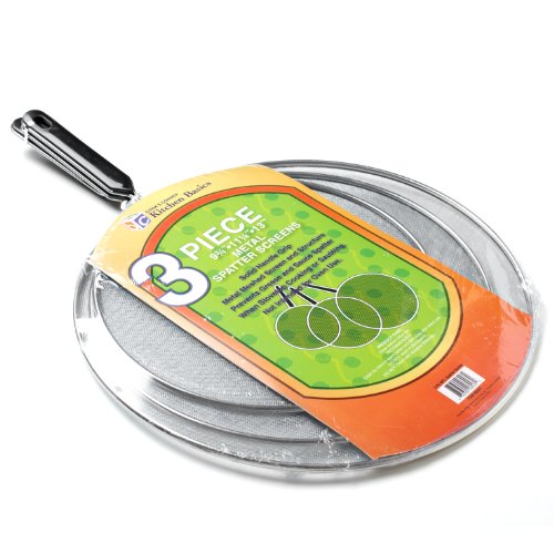 Kitchen Basics 3-Piece Metal Mesh Spatter Screen Set with Black Handle