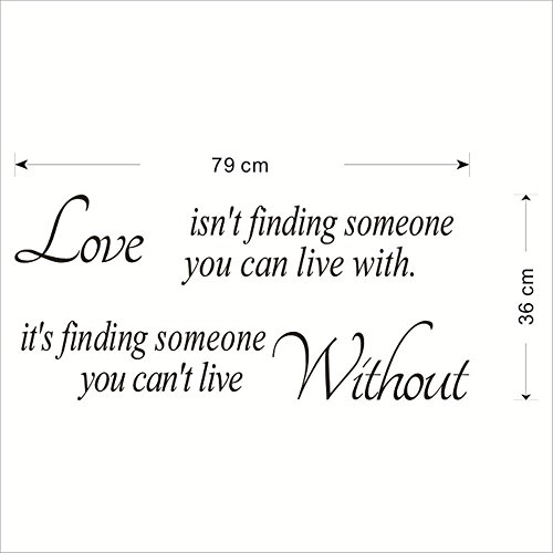 -. Feature : Love Isn't Finding Someone You Can Live With,It's Finding Someone You Can't Live Without / This wall decal will go on any smooth, flat, dry and dust free surface, great idea to decor your living room, bedroom, office, hall way...... / A beautiful wall art wall decal for your home or office will give your room a refreshing look, create an enchanting atmosphere / Using removable glue, can repeat paste, remove without leaving residue, don't worry about the wrong location, posted can be pulled off, you can always change style.
