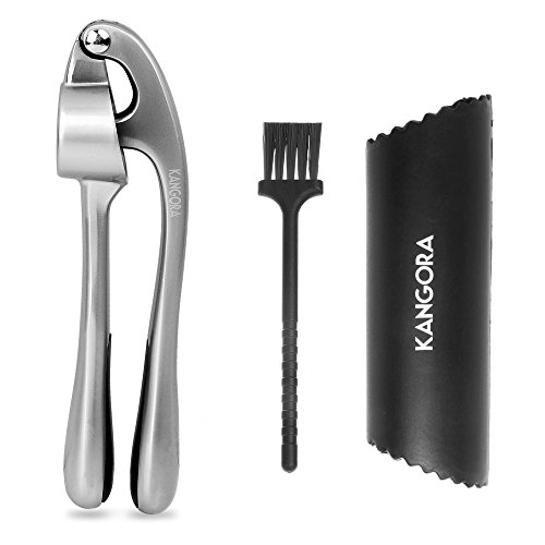 Garlic Press and Peeler Set by KANGORA, Premium Stainless Steel Professional Heavy Soft-Handled Presser Crush Garlic Peel Silicone Tube Roller with Cleaning Brush