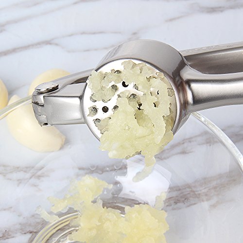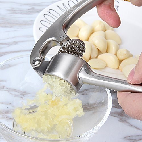 EASY TO USE: Heavy duty construction and ergonomic design, it is very easy to mince both unpeeled garlic cloves and press