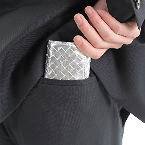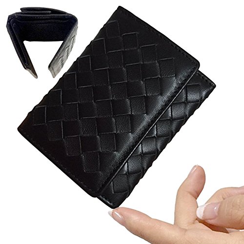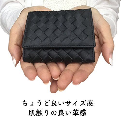 -. Title : 【モテ財布】羊革(職人技) 本革 コンパクト 三つ折り財布 編込み イントレチャート ギフト包装