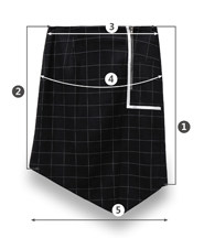 尺码 ①左裙长 ②右裙长 ③腰围 ④臀围 ⑤下摆围 ⑥里布下摆围 ⑦里布裙长